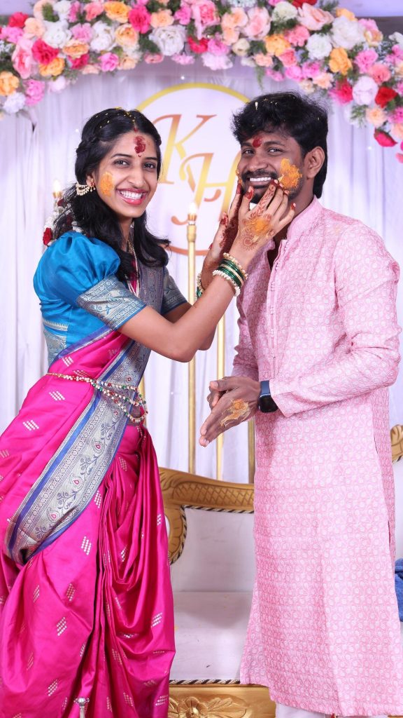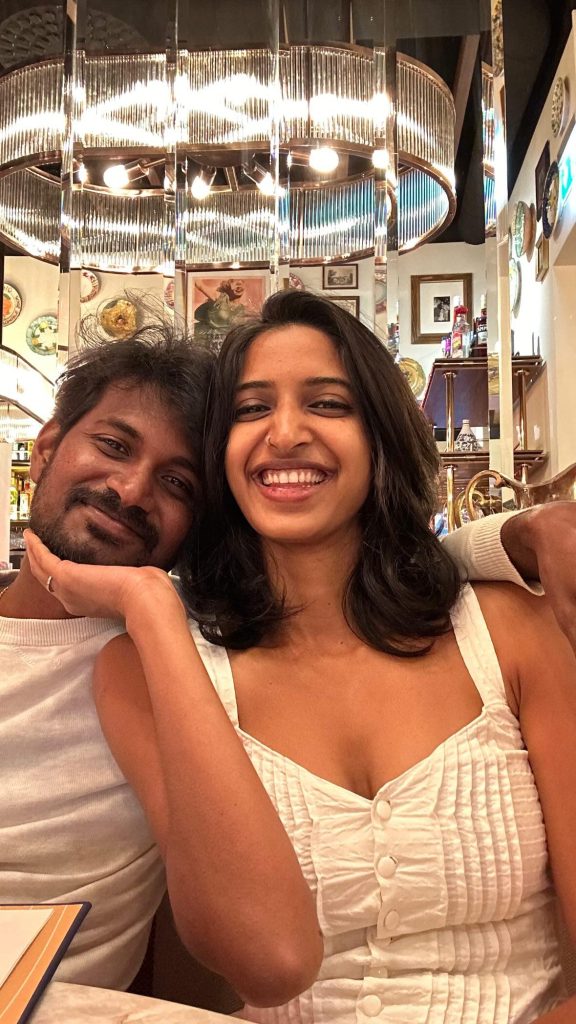 We matched and started chatting on Jan 1st 2023, Karthu flew to India to meet me on Jan 21st, and we got married on June 1st 2023. It’s been 2 years and we are so happy and blessed together. I and Karthu have been so in-sync with our journeys even before we met each other, we were destined to be together! But being in 2 different countries, it wouldn’t have been possible for us to meet, if not for Veggly! We are so grateful that we both were are the right time in the right place to have matched”.